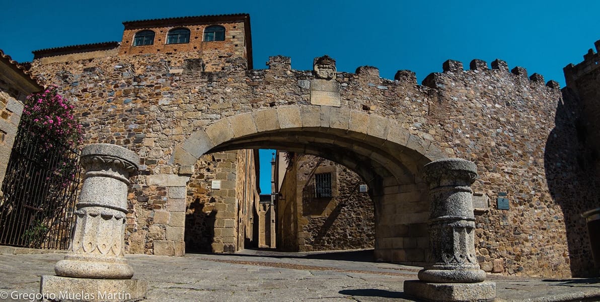 La puerta más emblemática para entrar a la Ciudad Monumental. Pasa bajo el arco y sigue sin prisa: lo mejor de Cáceres está en perderse por sus calles.